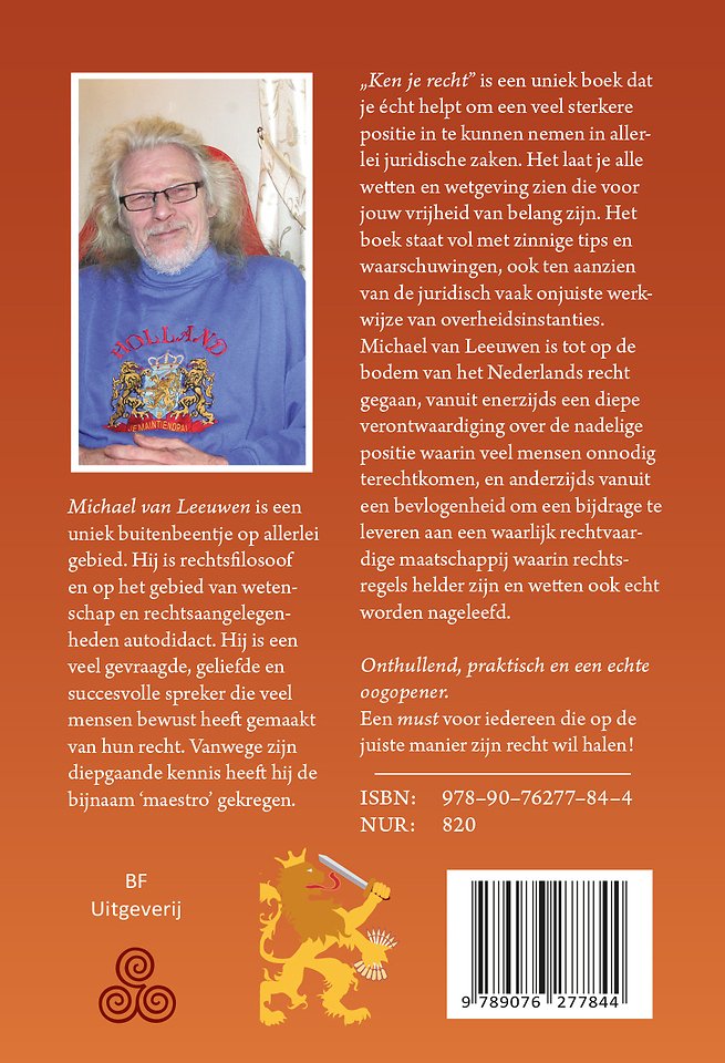Ken uw recht is een uniek boek dat je écht helpt om een veel sterkere positie in te kunnen nemen in allerlei juridische zaken. Het laat je alle wetten en wetgeving zien die voor jouw vrijheid van belang zijn. Het boek staat vol met zinnige tips en waarschuwingen, ook ten aanzien van de juridisch vaak onjuiste werkwijze van overheidsinstanties.