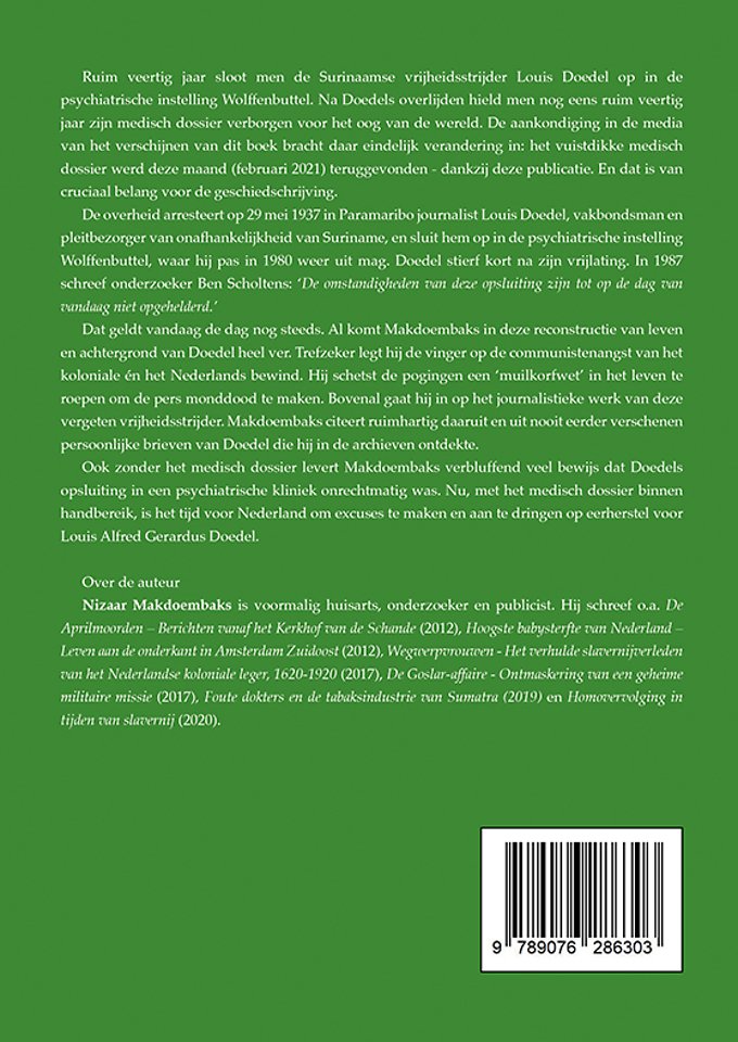Ruim veertig jaar sloot men de Surinaamse vrijheidsstrijder Louis Doedel op in de psychiatrische instelling Wolffenbuttel. Na Doedels overlijden hield men nog eens ruim veertig jaar zijn medisch dossier verborgen voor het oog van de wereld. De aankondiging in de media van het verschijnen van dit boek bracht daar eindelijk verandering in: het vuistdikke medisch dossier werd deze maand (februari 2021) teruggevonden - dankzij deze publicatie. En dat is van cruciaal belang voor de geschiedschrijving.