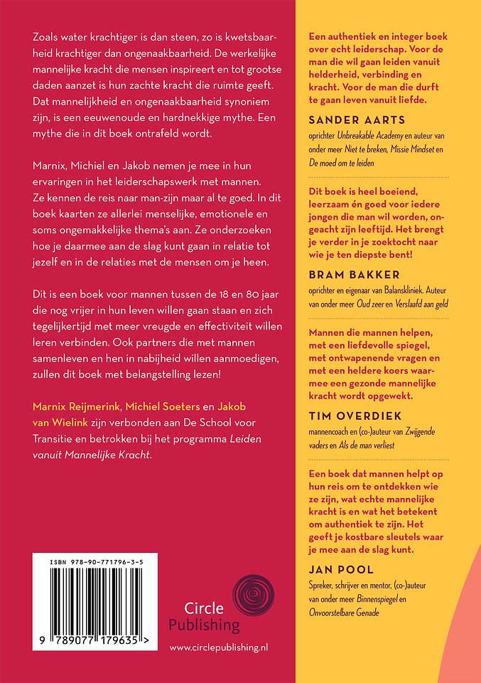 Leiden vanuit mannelijke kracht - Mythes ontrafeld Michiel Soeters 11 december 2024 In een tijd waarin de vraag ‘wat is mannelijkheid’ regelmatig klinkt en bepaalde influencers dat beeld patriarchaal en vrouwonvriendelijk neerzetten, vinden wij, Marnix Reijmerink, Michiel Soeters en Jakob van Wielink, het tijd om ‘oude’ mythes rondom mannelijk leiderschap te ontrafelen. In ‘Leiden vanuit mannelijke kracht - Mythes ontrafeld’ brengen we onze ervaringen met het werken met en begeleiden van mannen samen. Om mannen én vrouwen een nieuwe blik op mannelijke kracht te geven. Lees het volledige artikel