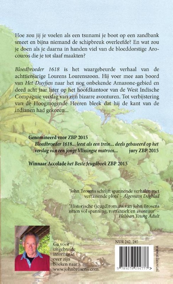 Bloedbroeder 1618 is het waargebeurde verhaal van de achttienjarige Lourens Lourenszoon. Hij voer mee aan boord van Het Duyfjen naar het nog onbekende Amazone-gebied en deed acht jaar later op het hoofdkantoor van de West Indische Compagnie verslag van zijn bizarre avonturen. Tot verbijstering van de Hoogmogende Heeren bleek dat hij de kant van de indianen had gekozen...