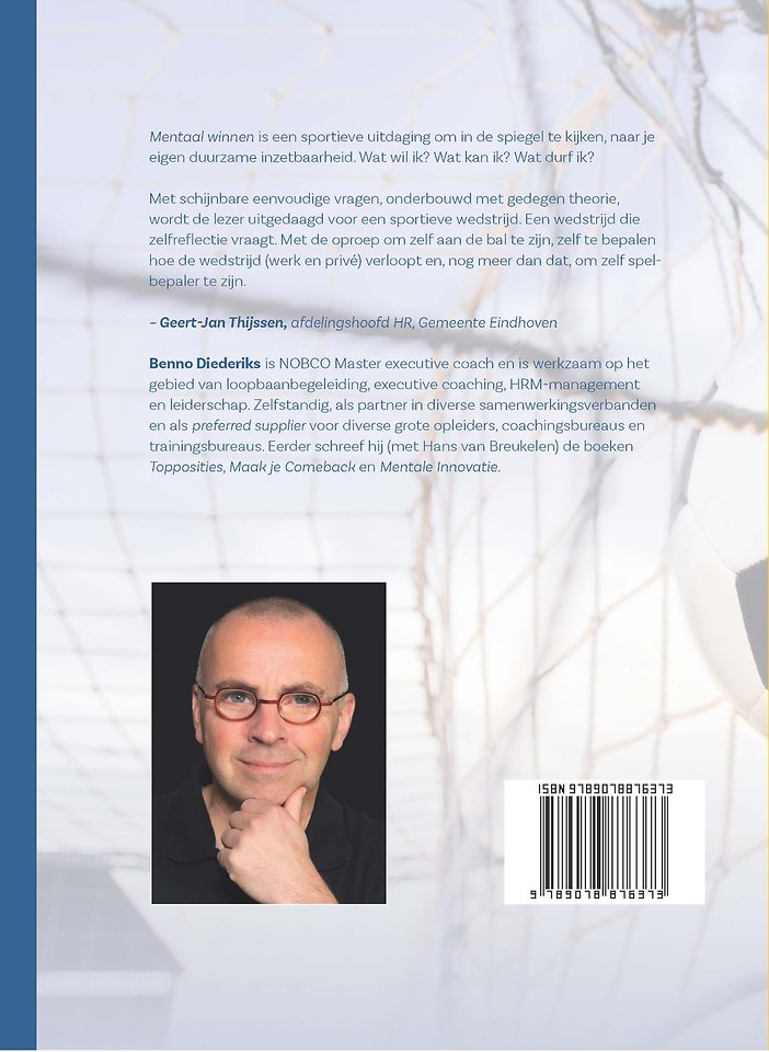 Mentaal winnen is een sportieve uitdaging om in de spiegel te kijken, naar je eigen duurzame inzetbaarheid. Wat wil ik? Wat kan ik? Wat durf ik? Met schijnbare eenvoudige vragen, onderbouwd met gedegen theorie, wordt de lezer uitgedaagd voor een sportieve wedstrijd. Een wedstrijd die zelfreflectie vraagt. Met de oproep om zelf aan de bal te zijn, zelf te bepalen hoe de wedstrijd (werk en privé) verloopt en, nog meer dan dat, om zelf spelbepaler te zijn.