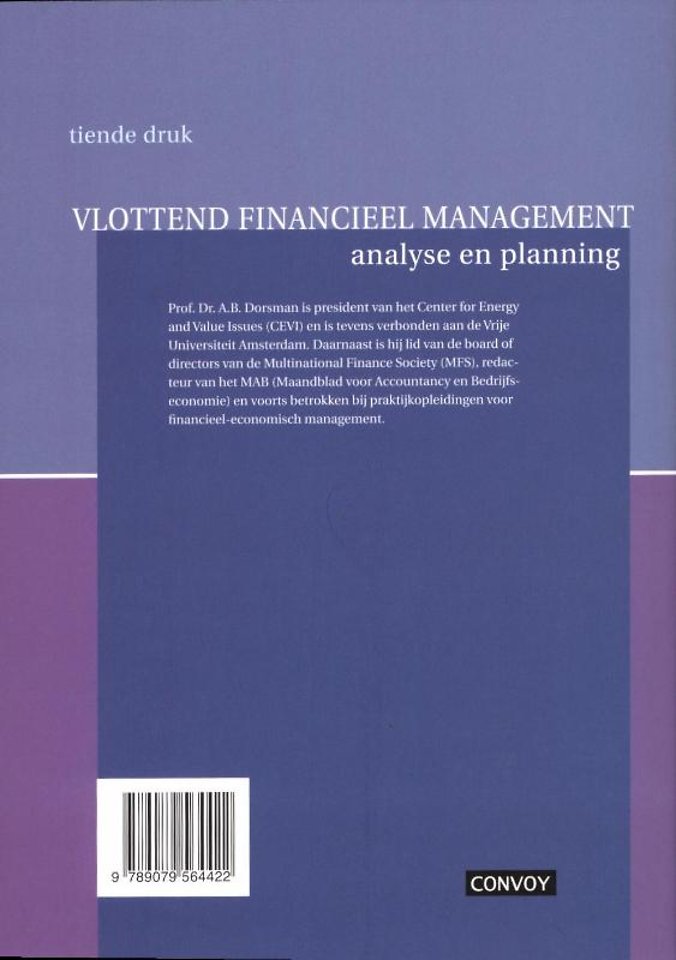 Het risico was - zonder dat de werknemer dit goed besefte - verschoven van werkgever naar werknemer. Dalingen van aandelenkoersen leidden in een aantal gevallen tot kortingen op de pensioenuitkeringen. Om tot goede beslissingen te komen, zijn prognoses van verwachte kasstromen van belang. Vervolgens dienen prognoses en realisaties met elkaar te worden vergeleken en dient zonodig bijstelling van bijvoorbeeld de investeringen plaats te vinden. Prestatiemeting, waaraan de laatste jaren een toenemende behoefte bestaat, behoort daarbij tot de mogelijkheden. In dit boek wordt aan de hiervoor genoemde punten aandacht besteed. Het boek is bestemd voor het onderwijs op het gebied van financieel management op universiteiten, hbo's en overige hogere financieel-economische opleidingen. Daarnaast is het boek geschikt voor diegenen die in de praktijk financieel-economische beslissingen dienen te nemen.