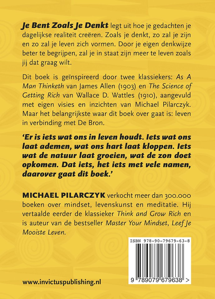 Michael Pilarczyk (1969) is auteur, spreker en mindset en mindfulness coach. Hij schrijft en spreekt over zelfontwikkeling, spirituele groei en zakelijk en persoonlijk succes. Eerder verschenen zijn debuutroman 'Dansen in de hemel' (2014) en zijn moderne bewerking van 'Think and Grow Rich' (2016). Michael is mede-eigenaar van Mastermind Academy, Invictus Publishing en de Meditation Moments app.