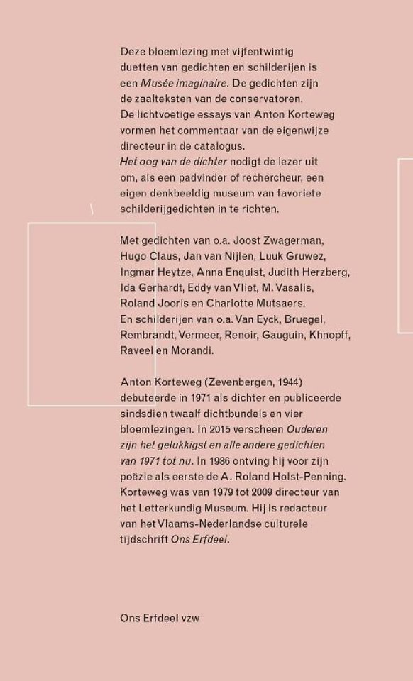 Het oog van de dichter nodigt de lezer uit om, als een padvinder of rechercheur, een eigen denkbeeldig museum van favoriete schilderijgedichten in te richten.