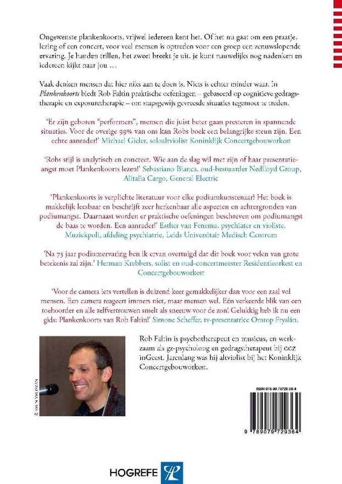 Vaak denken mensen dat hier niets aan te doen is. Niets is echter minder waar. In 'Plankenkoorts' biedt Rob Faltin praktische oefeningen - gebaseerd op cognitieve gedragstherapie en exposuretherapie - om stapsgewijs gevreesde situaties tegemoet te treden.