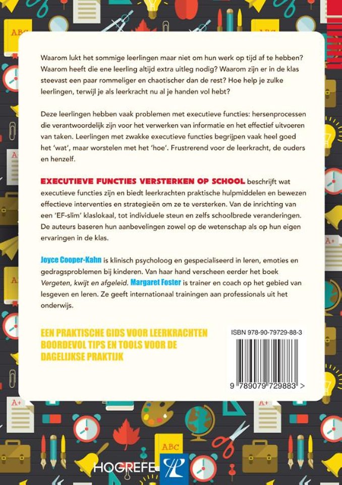 Waarom heeft die ene leerling altijd extra uitleg nodig? Waarom zijn er in de klas altijd een paar kinderen rommeliger dan de rest? Hoe kun je zulke leerlingen nog meer helpen, terwijl je nu al je handen vol hebt?Dit soort leerlingen hebben vaak een probleem in de executieve functies: een groep hersenprocessen die verantwoordelijk zijn voor het beheren van de informatie en de taken, die nodig zijn om op school te slagen. Leerlingen met zwakke executieve functies begrijpen vaak heel goed het 'wat', maar worstelen met het 'hoe'. Frustrerend voor de leerkracht, de ouders en henzelf.Dit boek helpt om de executieve functies op school te verbeteren. Niet door meer te doen, maar door slimmer te werken. Na een duidelijke basis met uitleg over de executieve functies, worden praktische en direct toepasbare hulpmiddelen en strategieën besproken. Van de inrichting van een 'EF-slim' klaslokaal, tot individuele steun en zelfs schoolbrede veranderingen.De auteurs baseren hun aanbevelingen op zowel de wetenschap als hun eigen ervaringen uit de klas. Daardoor is dit boek opgebouwd op een manier die echte leerkrachten op echte scholen direct helpt bij de dagelijkse problemen.