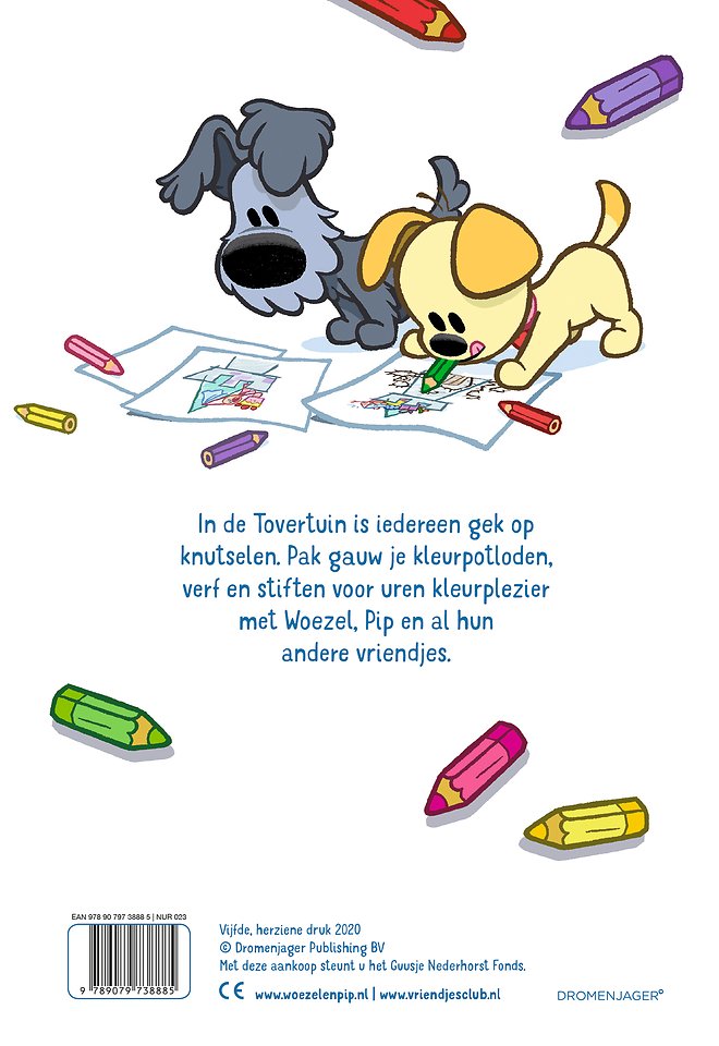 Pak gauw je kleurpotloden, verf of stiften voor eindeloos tekenplezier met Woezel, Pip, Buurpoes, Molletje en alle andere bekende figuurtjes uit de Tovertuin.