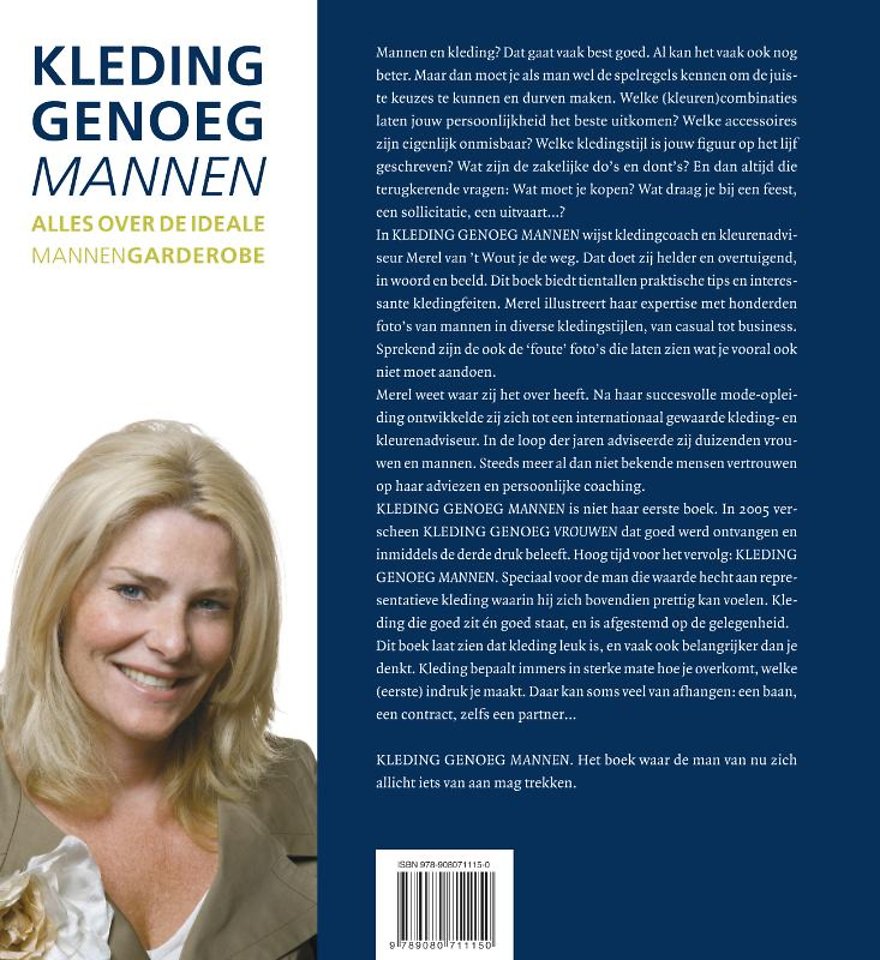 Kledingcoach en kleurenadviseur Merel van 't Wout wijst je de weg. Dit doet zij helder en overtuigend, in woord en beeld. Dit boek beidt tientallen praktische tips en interessante kledingfeiten. Merel illustreet haar expertise met honderden foto's van mannen en diverse kledingstijlen, van casual tot business. Sprekend zijn ook de "foute" fotó's die laten zien wat je soms vooral niet moet aandoen.