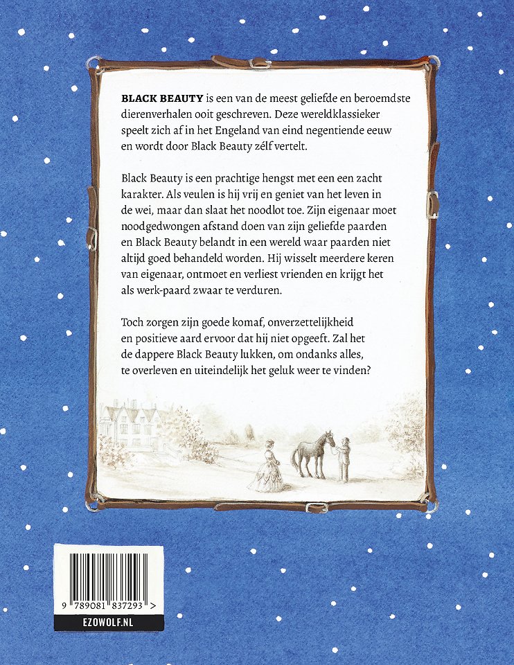 Black beauty is een van de meest geliefde en beroemdste dierenverhalen ooit geschreven. Deze wereldklassieker speelt zich af in het Engeland van eind negentiende eeuw en wordt door Black Beauty zélf verteld.