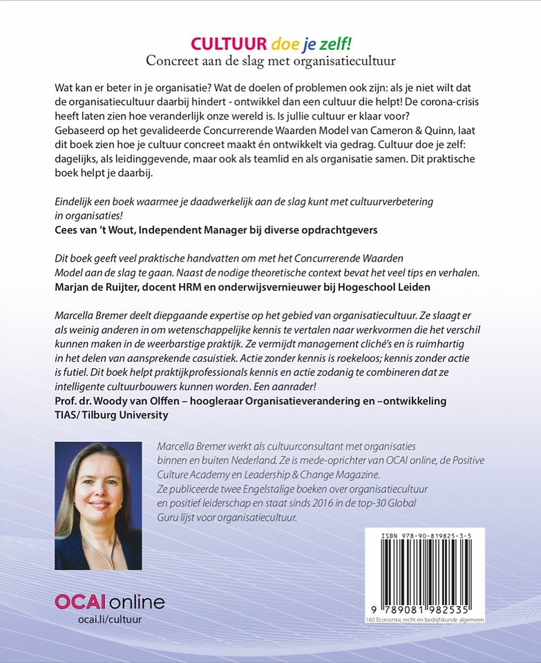 Marcella Bremer: ‘Cultuur is niet zweverig, maar doe je zelf’ Bert Peene 26 april 2021 Cultuur is veel minder ongrijpbaar dan mensen vaak denken. Dat is de belangrijkste boodschap die Marcella Bremer al heel wat jaren verkondigt; zowel binnen als buiten Nederland. Het Concurrerende Waarden Model (OCAI) is haar houvast. Het maakt het mogelijk cultuur concreet te maken en te ontwikkelen. Gewoon door te doen. Lees het volledige artikel