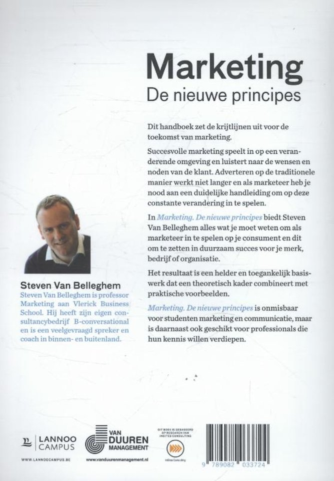 Meer over Steven Van BelleghemSuccesvolle marketeers weten in te spelen op een veranderende omgeving en luisteren naar de wensen en behoeften van de klant. Maar hoe doet u dat, nu adverteren op de traditionele manier niet langer werkt? In 'Marketing. De nieuwe principes' zet Steven Van Belleghem de krijtlijnen uit voor de toekomst van marketing. Hij laat zien wat u als marketeer in huis moet hebben om doortastend te reageren op constante verandering.