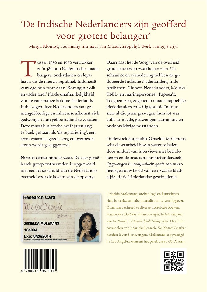 Deze massale uittocht heeft jarenlang te boek gestaan als ‘de repatriëring’; een term waarmee goede zorg en overheidssteun wordt gesuggereerd. Deze zeer gemêleerde groep ontheemden is echter opgezadeld met een forse schuld aan de Nederlandse overheid voor de kosten van de overtocht, de tijdelijke opvang in een contractpension, kleding en meubels voor de toekomstige woning.