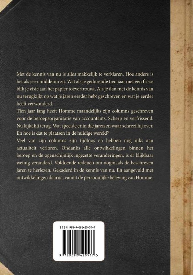 Tien jaar lang heeft Homme maandelijks zijn columns geschreven voor de beroepsorganisatie van accountants. Scherp en verfrissend. Nu kijkt hij terug. Wat speelde er in die jaren en waar schreef hij over. En hoe is dat te plaatsen in de huidige wereld?