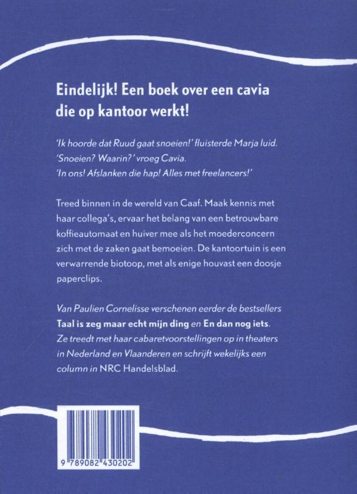 Cavia werkt op de afdeling Communicatie. In korte humoristische hoofdstukken leren we haar en haar collega's kennen. Stella van Human Resources. Ruud het enge hoofd van de afdeling Financiën. En Harm-Jan van de IT-afdeling, die al sinds 1999 een tamagotchi in leven houdt.