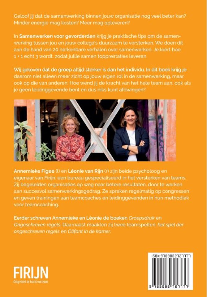 In 'Samenwerken voor gevorderden' krijg je praktische tips om de samenwerking tussen jou en jouw collega’s duurzaam te versterken. We doen dit aan de hand van 20 herkenbare verhalen over samenwerken. Je leert hoe 1 + 1 echt 3 wordt, zodat jullie samen topprestaties leveren.