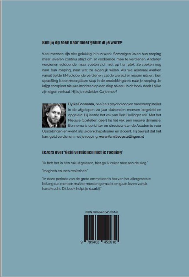 Veel mensen zijn niet gelukkig in hun werk. Sommigen leven hun roeping maar leveren continu strijd om er voldoende mee te verdienen. Anderen verdienen voldoende, maar voelen zich niet op hun plek. Ze zoeken nog naar hun roeping, naar wat ze eigenlijk willen. Als we allemaal werken vanuit liefde EN voldoende verdienen, zal de wereld er mooier uitzien. Een opstelling is een weergaloze stap in de ontdekkingsreis naar je roeping. Je krijgt compleet nieuwe inzichten op een diep niveau. In dit boek deelt Hylke zijn eigen verhaal. Hij is je reisleider. Ga je mee?