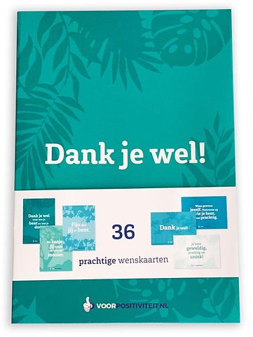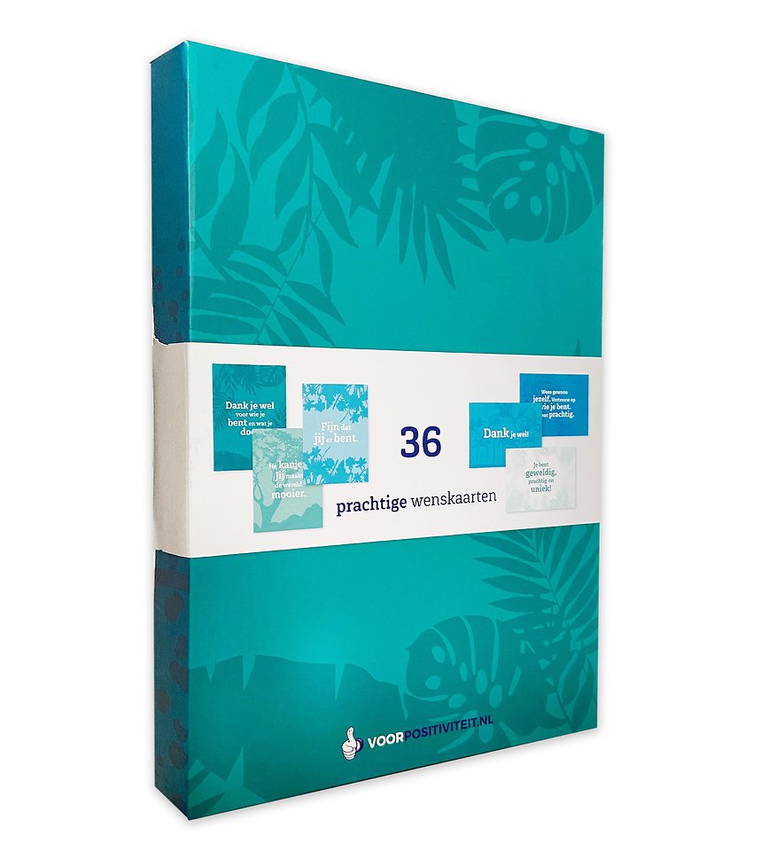Nieuw in ons assortiment: 36 positieve wenskaarten om mensen mee te bedanken. In een frisse kleur opgemaakt en in een schattig formaat, net iets kleiner dan standaard. Het zijn 36 gevouwen kaarten, met 6 verschillende ontwerpen. In een handige bewaardoos. De gevouwen kaarten zijn van stevige kwaliteit papier. Handig om bij de hand te hebben voor een persoonlijk berichtje bij een cadeau of om bijv. een giftcard bij te voegen. De bijpassende enveloppen zijn wit. Zo heb je altijd een leuke kaart bij de hand. Ideaal voor op het werk, maar zeker ook voor thuis. Met mooie positieve bedankteksten.