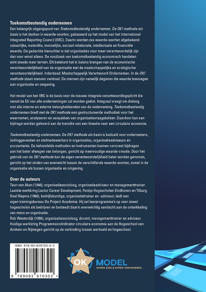 Toekomstbestendig ondernemen. De OK! methode als basis is bedoeld voor ondernemers, leidinggevenden en stafmedewerkers in organisaties, organisatieadviseurs en accountants. De behandelde methoden en instrumenten kunnen concreet bijdragen aan het beter afwegen van belangen, gericht op meervoudige waarde-creatie. Door het gebruik van de OK! methode kan de eigen verantwoordelijkheid beter worden genomen, gericht op het vinden van evenwicht tussen de verschillende waarde-soorten, zowel in de organisatie als tussen organisatie en omgeving.