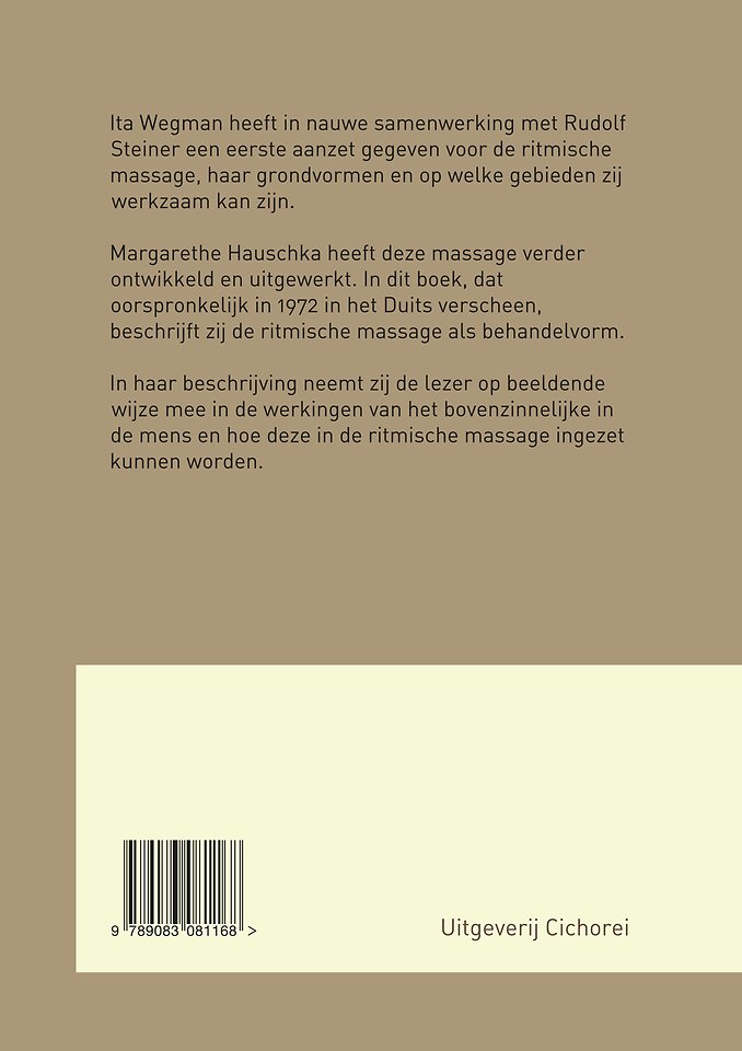 Margarethe Hauschka heeft deze massage verder ontwikkeld en uitgewerkt. In dit boek, dat oorspronkelijk in 1972 in het Duits verscheen, beschrijft zij de ritmische massage als behandelvorm.