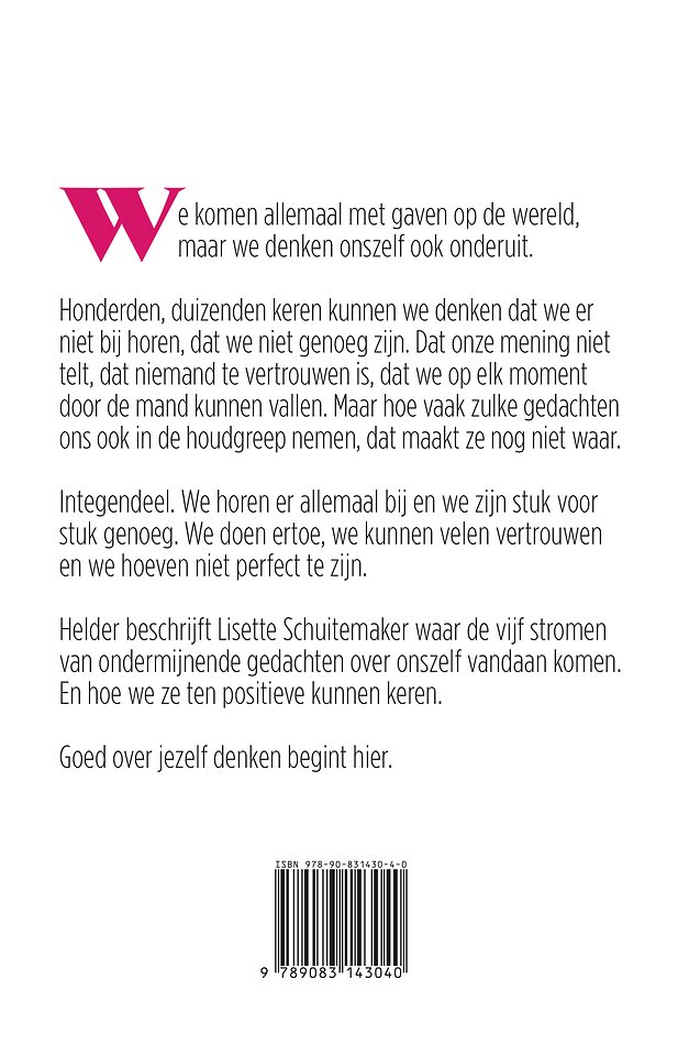 Waarom hoorde ik niet eerder van de vijf hardnekkige gedachtepatronen over onszelf en waarom kennen we die niet allemaal? Met die vragen begon dit boek dat in 2011 voor het eerst uitkwam en dat ook in het Engels, Duits en Italiaan is verschenen.