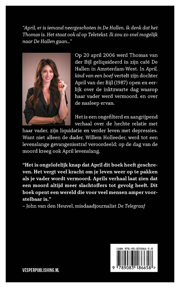Op 20 april 2006 werd Thomas van der Bijl geliquideerd in zijn café De Hallen in Amsterdam-West. In 'April, kind van een boef' vertelt zijn dochter April van der Bijl (1987) open en eerlijk over de inktzwarte dag waarop haar vader werd vermoord, en over de nasleep ervan.