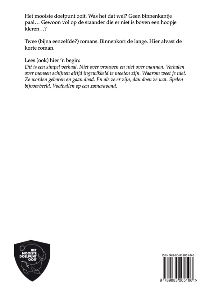 Dit is een simpel verhaal. Niet over vrouwen en niet over mannen. Verhalen over mensen schijnen altijd ingewikkeld te moeten zijn. Waarom weet je niet. Ze worden geboren en gaan dood. En als ze er zijn, dan doen ze wat. Spelen bijvoorbeeld. Voetballen op een zomeravond.