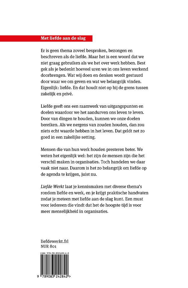 Liefde Werkt laat je kennismaken met diverse thema’s rondom liefde en werk, en je krijgt praktische handvatten zodat je meteen met liefde aan de slag kunt. Een must voor iedereen die vindt dat het de hoogste tijd is voor meer menselijkheid in organisaties.