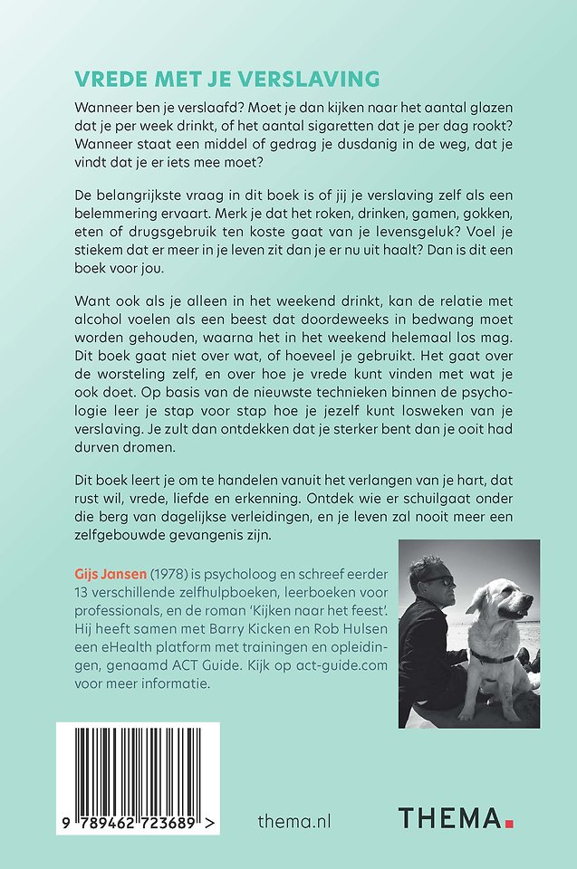 Gijs Jansen is dé autoriteit op het gebied van ACT en schreef in totaal 15 verschillende zelfhulpboeken, leerboeken voor professionals, en de roman ‘Kijken naar het feest’. Hij is mede-eigenaar van het bedrijf ‘PsychFlex’, waarbinnen hij samen met Steven C. Hayes online content ontwikkelt op basis van ACT en Process Based Therapy (PBT). Daarnaast heeft hij in Nederland een vergelijkbaar bedrijf met trainingen en opleidingen (ACT Guide).