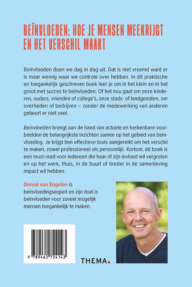 ‘Beïnvloeden - Hoe je mensen meekrijgt en het verschil maakt’ is een boek met 10 handige tools. Je kunt ze goed gebruiken wanneer je iets voor elkaar wil krijgen op maatschappelijk -of persoonlijk vlak. Ze zijn ook goed te vertalen naar bedrijfscontext. Het boek is bijzonder bruikbaar voor mensen die hier nog weinig ervaring mee hebben, maar ook voor ervaren mensen biedt het goede inzichten.