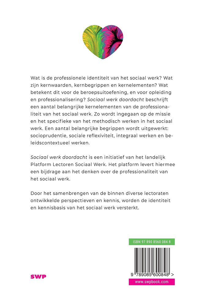 Wat is de professionele identiteit van het sociaal werk? Wat zijn kernwaarden, kernbegrippen en kernelementen? Wat betekent dit voor de beroepsuitoefening, en voor opleiding en professionalisering? Sociaal werk doordacht beschrijft een aantal belangrijke kernelementen van de professionaliteit van het sociaal werk.