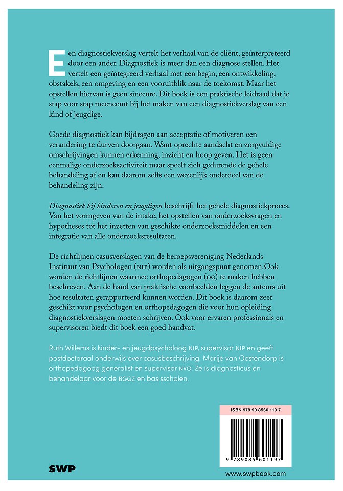 Een diagnostiekverslag vertelt het verhaal van de cliënt, geïnterpreteerd door een ander. Diagnostiek is meer dan een diagnose stellen. Het vertelt een geïntegreerd verhaal met een begin, een ontwikkeling, obstakels, een omgeving en een vooruitblik naar de toekomst. Maar het opstellen hiervan is geen sinecure. Dit boek is een praktische leidraad dat je stap voor stap meeneemt bij het maken van een goed diagnostiekverslag van een kind of jeugdige.