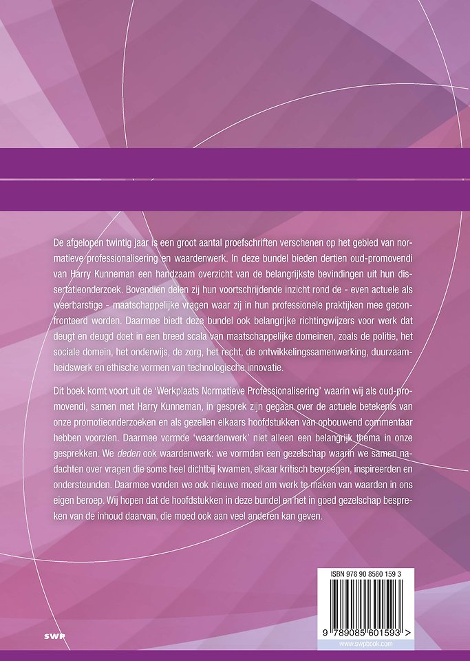 De afgelopen twintig jaar is een groot aantal proefschriften verschenen op het gebied van normatieve professionalisering en waardenwerk. In deze bundel bieden dertien oud-promovendi van Harry Kunneman een handzaam overzicht van de belangrijkste bevindingen uit hun dissertatieonderzoek.