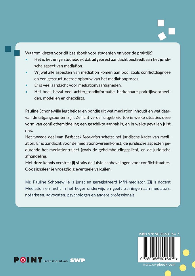 - het enige studieboek dat uitgebreid aandacht besteedt aan het juridische aspect van mediation
