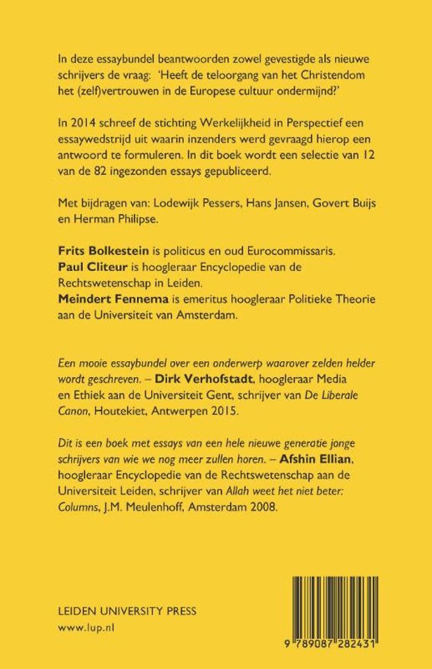 In deze essaybundel beantwoorden zowel gevestigde als nieuwe schrijvers de vraag:  'Heeft de teloorgang van het Christendom het (zelf)vertrouwen in de Europese cultuur ondermijnd?'