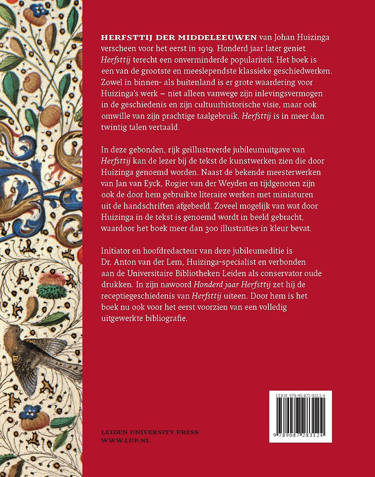 "Herfsttij der Middeleeuwen" van Johan Huizinga verscheen voor het eerst in 1919. Honderd jaar later geniet Herfsttij terecht een onverminderde populariteit. Het boek is een van de grootste en meeslependste klassieke geschiedwerken. Zowel in binnen- als buitenland is er grote waardering voor Huizinga’s werk – niet alleen vanwege zijn inlevingsvermogen in de geschiedenis en zijn cultuurhistorische visie, maar ook omwille van zijn prachtige taalgebruik. Herfsttij is in meer dan twintig talen vertaald.