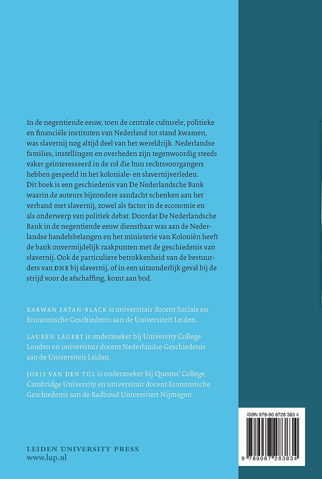Dit boek is een geschiedenis van De Nederlandsche Bank waarin de auteurs bijzondere aandacht schenken aan het verband met slavernij, zowel als factor in de economie en als onderwerp van politiek debat. Doordat De Nederlandsche Bank in de negentiende eeuw dienstbaar was aan de Nederlandse handelsbelangen en het ministerie van Koloniën heeft de bank onvermijdelijk raakpunten met de geschiedenis van slavernij. Ook de particuliere betrokkenheid van de bestuurders van DNB bij slavernij, of in een uitzonderlijk geval bij de strijd voor de afschaffing, komt aan bod.