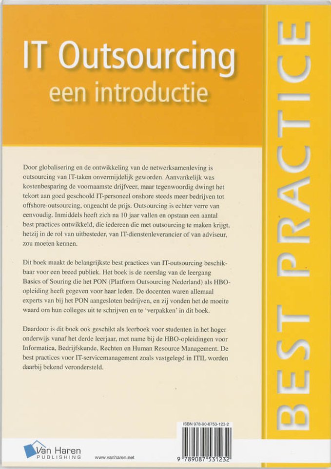 Door globalisering en de ontwikkeling van de netwerksamenleving is outsourcing van IT-taken onvermijdelijk geworden. Aanvankelijk was kostenbesparing de voornaamste drijfveer, maar tegenwoordig dwingt het tekort aan goed geschoold IT-personeel onshore, steeds meer bedrijven tot offshore outsourcing, ongeacht de prijs. Outsourcing is echter verre van eenvoudig. Inmiddels hebben zich na 10 jaar vallen en opstaan een aantal best practices ontwikkeld, die iedereen die met outsourcing te maken krijgt, hetzij in de rol van uitbesteder, van IT-dienstenleverancier of van adviseur, zou moeten kennen.