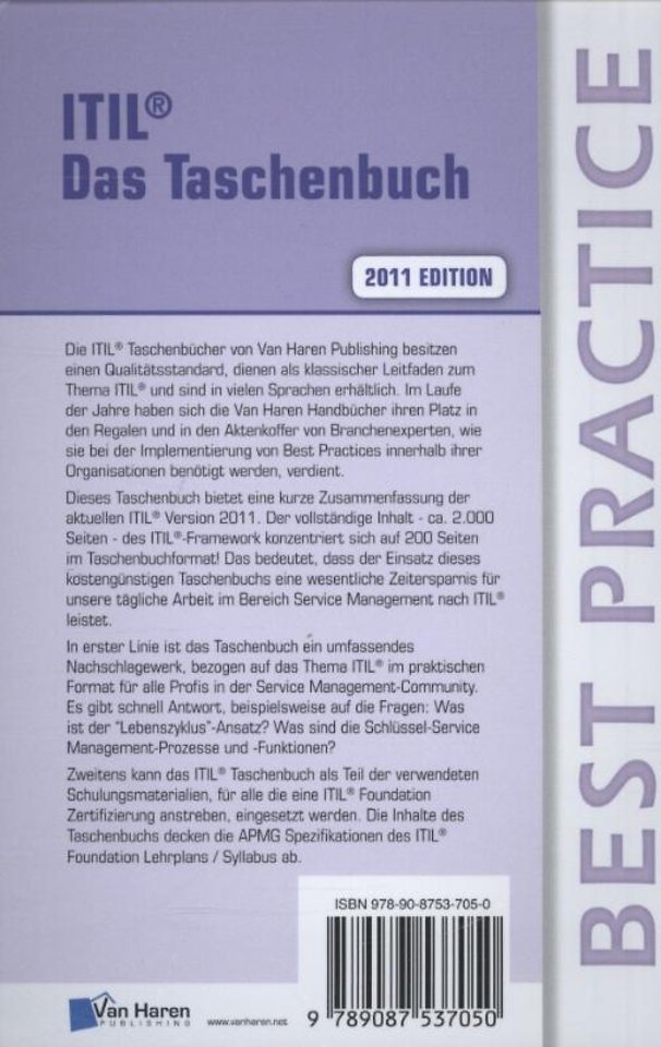 Die ITIL® Taschenbücher von Van Haren Publishing besitzen einen Qualitätsstandard, dienen als klassischer Leitfaden zum Thema ITIL® und sind in vielen Sprachen erhältlich. Im Laufe der Jahre haben sich die Van Haren Handbücher ihren Platz in den Regalen und in den Aktenkoffer von Branchenexperten, wie sie bei der Implementierung von Best Practices innerhalb ihrer Organisationen benötigt werden, verdient.