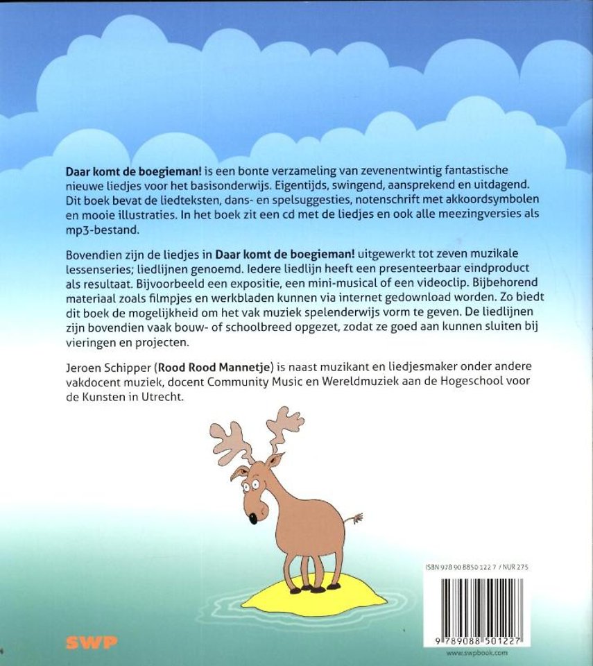 In het boek zijn de liedteksten en muzieknotatie met akkoordsymbolen opgenomen. Veel tips, werkbladen, buitenmuzikale thema's en opdrachten bieden ruimte voor ambitieuze en kleinschaliger uitwerkingen. In combinatie met het uitgebreide aanvullende materiaal op de website in de vorm van filmpjes, een 'Zing je slim'-diploma, sjablonen, kleurplaten etc, biedt De Boegieman een compleet kunstzinnig programma.