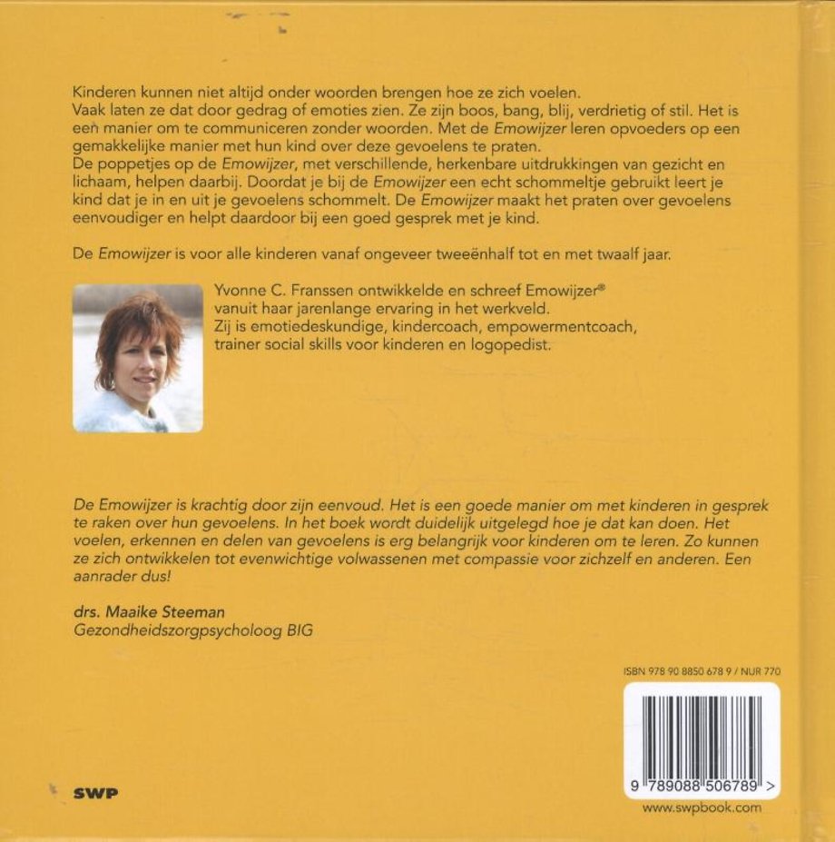 De Emowijzer vind je middenin het boek. Het boek geeft op heldere en eenvoudige wijze uitleg aan opvoeders waarom het belangrijk is hun kind te leren zijn gevoelens te begrijpen, te herkennen en erover te praten. Je leest dat gevoelens niet zweverig zijn, maar horen bij alle jongens en meisjes. Dat onder elk gevoel een behoefte verstopt zit. Dat je als je je gevoelens begrijpt, je ze kunt gaan gebruiken als richtingaanwijzers in je leven. Dat je, als je weet wat je voelt, je jezelf kent. Dat je, als je je gevoelens begrijpt, je rustig aan de buitenwereld kunt uitleggen wat je nodig hebt. In plaats van schreeuwend en 'out of control'. Zo kun je je ontwikkelen tot een gezond en veerkrachtig mens.