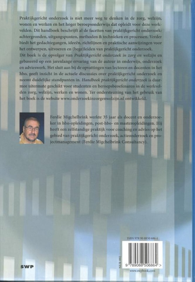 Een compleet en actueel handboek voor het doen van praktijkgericht onderzoek in zorg, welzijn, werken en wonen. Het boek sluit aan bij de opvattingen van lectoren in het hbo en de Vereniging Hogescholen. Dit handboek beschrijft alle facetten van praktijkgericht onderzoek: achtergronden, methoden & technieken en processen. De voorbeelden uit de beroepspraktijk, de handvatten en de praktische aanwijzingen maken het boek meteen geschikt voor het doen van praktijkgericht onderzoek.