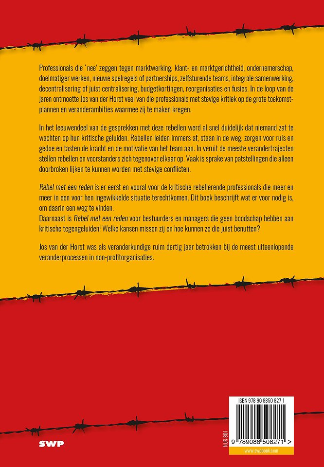 Rebel met een reden - Wanneer je als professional de hakken in het zand zet Jos van der Horst 15 mei 2018 In de loop van de jaren ontmoette ik veel professionals met stevige kritiek op de veranderambities van ‘hun organisatie’. Meestal zat niemand te wachten op hun kritische geluid. Lees het volledige artikel