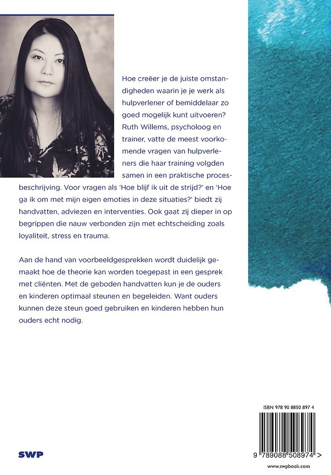 Hoe creëer je de juiste omstandigheden waarin je je werk als hulpverlener of bemiddelaar zo goed mogelijk kunt uitvoeren? Ruth Willems, psycholoog en trainer, vatte de meest voorkomende vragen van hulpverleners die haar training volgden samen in een praktische procesbeschrijving. Voor vragen als ‘hoe blijf ik uit de strijd?’ en ‘hoe ga ik om met mijn eigen emoties in deze situaties?’ biedt zij handvatten, adviezen en interventies. Ook gaat zij dieper in op begrippen die nauw verbonden zijn met echtscheiding zoals loyaliteit, stress en trauma.