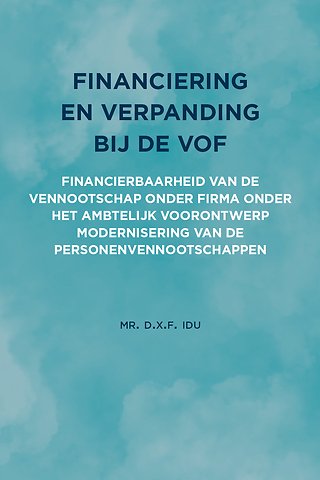 Nederland kent ongeveer 183.000 vennootschappen onder firma’s (vof’s), nagenoeg allemaal bedrijven die behoren tot het midden- en kleinbedrijf. Deze vof’s hebben al jaren moeite met het aantrekken van bancair krediet. Een belangrijk onderdeel van het Voorontwerp is het verbeteren van de financierbaarheid van de personenvennootschappen. In dit boek beschrijft de auteur of het Voorontwerp in die opzet zal slagen.