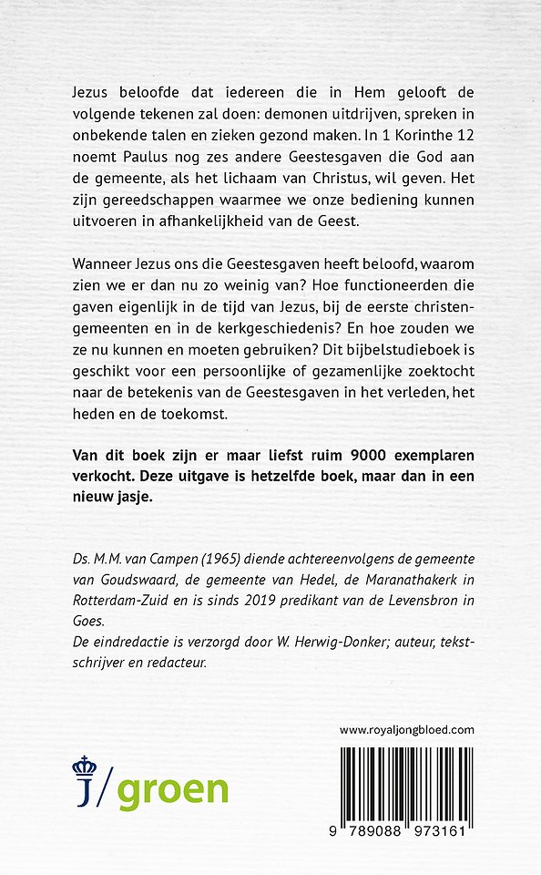 Als Jezus ons die Geestesgaven heeft beloofd, waarom zien we er dan nu zo weinig van? Hoe functioneerden die gaven eigenlijk in de tijd van Jezus, bij de eerste christengemeenten en in de kerkgeschiedenis? En hoe zouden we ze nu kunnen en moeten gebruiken?