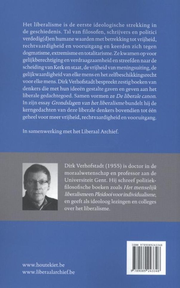Dirk Verhofstadt bespreekt zestig boeken van denkers die met hun ideeën gestalte gaven en geven aan het liberale gedachtengoed. Samen vormen ze De liberale canon. In zijn essay Grondslagen van het liberalisme bundelt hij de kerngedachten van deze liberale denkers bovendien tot één alomvattend geheel voor meer vrijheid, rechtvaardigheid en vooruitgang.