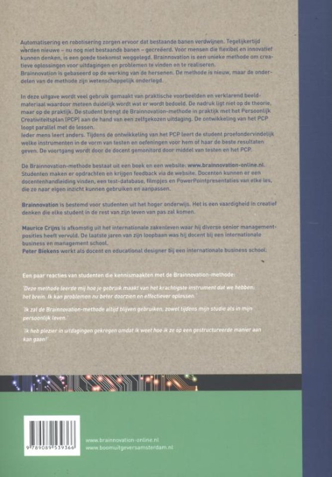 Automatisering en robotisering zorgen ervoor dat bestaande banen verdwijnen. Tegelijkertijd worden nieuwe - nu nog niet bestaande banen - gecreëerd. Voor mensen die flexibel en innovatief kunnen denken, is een goede toekomst weggelegd. Brainnovation is een unieke methode om creatieve oplossingen voor uitdagingen en problemen te vinden en te realiseren.