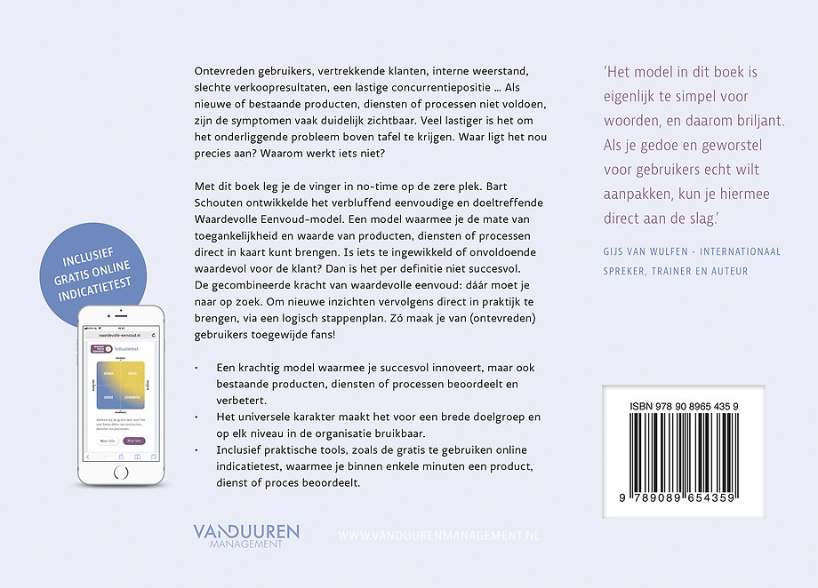 Waardevolle eenvoud - Basale remedie tegen gedoe en geworstel Bart Schouten 24 december 2018 Symptomen van onvrede vallen op hun plek en leiden naar de kern die altijd op orde moet zijn voor succes: is je product, dienst of proces waardevol en eenvoudig voor de gebruiker, zodat zij hun doelen kunnen behalen? Lees het volledige artikel