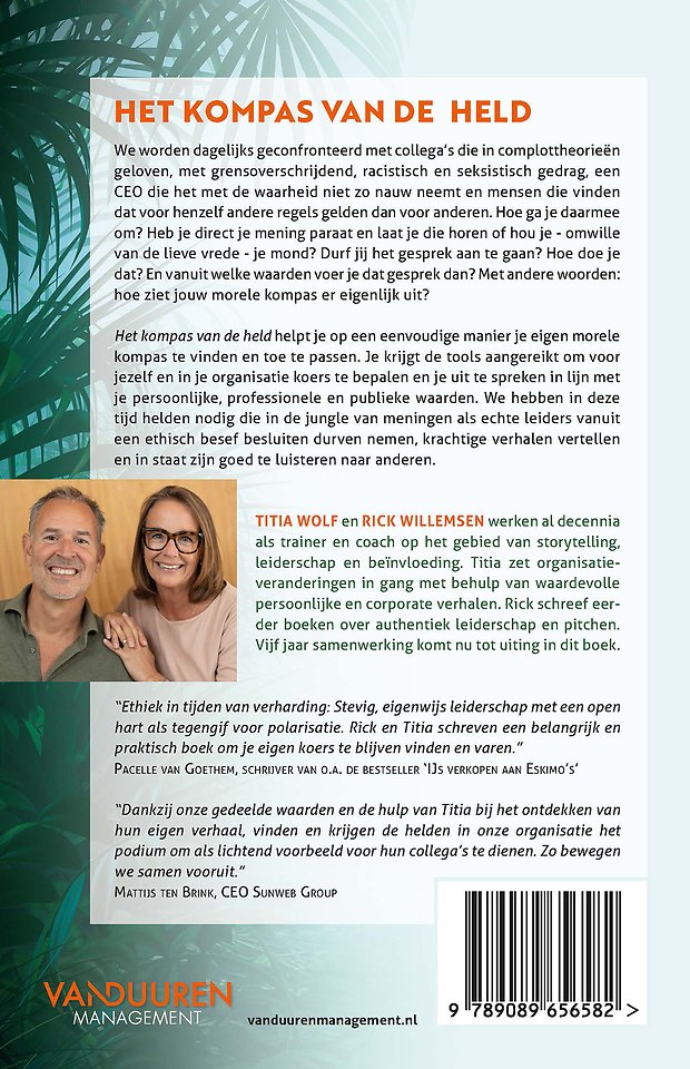 'Het kompas van de held' helpt je op een eenvoudige manier je eigen morele kompas te vinden en toe te passen. Je krijgt de tools aangereikt om voor jezelf en in je organisatie koers te bepalen en je uit te spreken in lijn met je persoonlijke, professionele en publieke waarden. We hebben in deze tijd helden nodig die in de jungle van meningen als echte leiders vanuit een ethisch besef besluiten durven nemen, krachtige verhalen vertellen en in staat zijn goed te luisteren naar anderen.