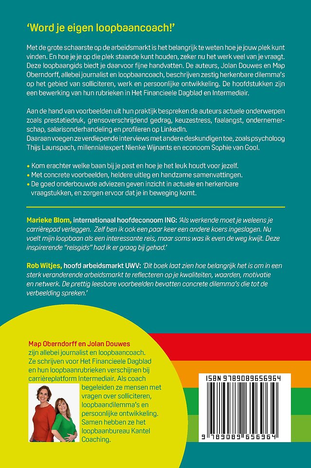 Meer over de auteursMet de grote schaarste op de arbeidsmarkt is het belangrijk te weten hoe je jouw plek kunt vinden. En hoe je je op die plek staande kunt houden, zeker nu het werk veel van je vraagt. Deze loopbaangids biedt je daarvoor fijne handvatten. De auteurs, Jolan Douwes en Map Oberndorff, allebei journalist en loopbaancoach, beschrijven zestig herkenbare dilemma’s op het gebied van solliciteren, werk en persoonlijke ontwikkeling. De hoofdstukken zijn een bewerking van hun rubrieken in Het Financieele Dagblad en Intermediair.